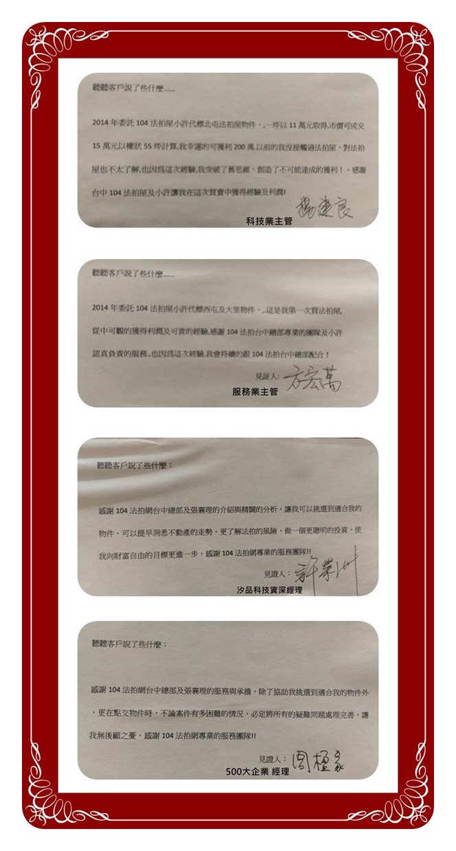 法拍屋往往被視為房市景氣指標之一,也是不少專業投資客撿便宜首選,原因便是拍賣屋價格實惠親民、產權清楚,第1拍便是市價8折,之後2~3拍再打8折,因此吸引不少人投標購買。不過中間眉角訊息多,其中隱藏性風險,包含有無點交、資金調度、土地屬性等。首先得先最重要的仍是了解標的物本身狀況,104法拍屋台中7期總部執行副總聶學智指出,新手得先了解拍賣標的物,包含拍賣公告、查封筆錄等都要細看,重點如標的物種類、土地分區、底價及保證金、抵押權塗銷以及點交或非點交等要搞清楚。無法進門了解格局屋況,是想嘗試法拍屋的人最多疑慮,聶學智指出,若是公寓、大樓產品,除了從外觀推敲外,也可由樓上及樓下住戶推測室內格局,如前後陽台是否通風、衛浴開窗等基本條件,而同樓層可能屬對稱格局,還得留意。另外,雖然現在凶宅或特殊屋況多會進行標註,但標定物若為凶宅樓上、樓下也容易會影響行情,因此還是得多上網查清楚,出價時才會有個底喔。